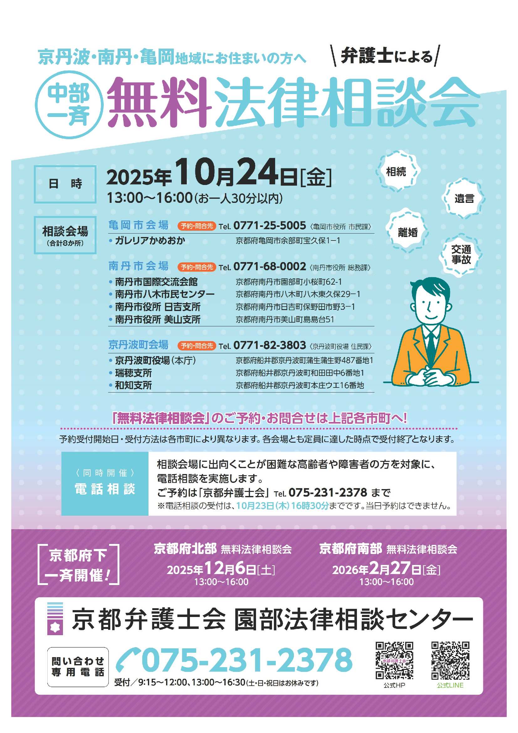 10月23日(木)16時30分まで、京都弁護士会で予約受付中!